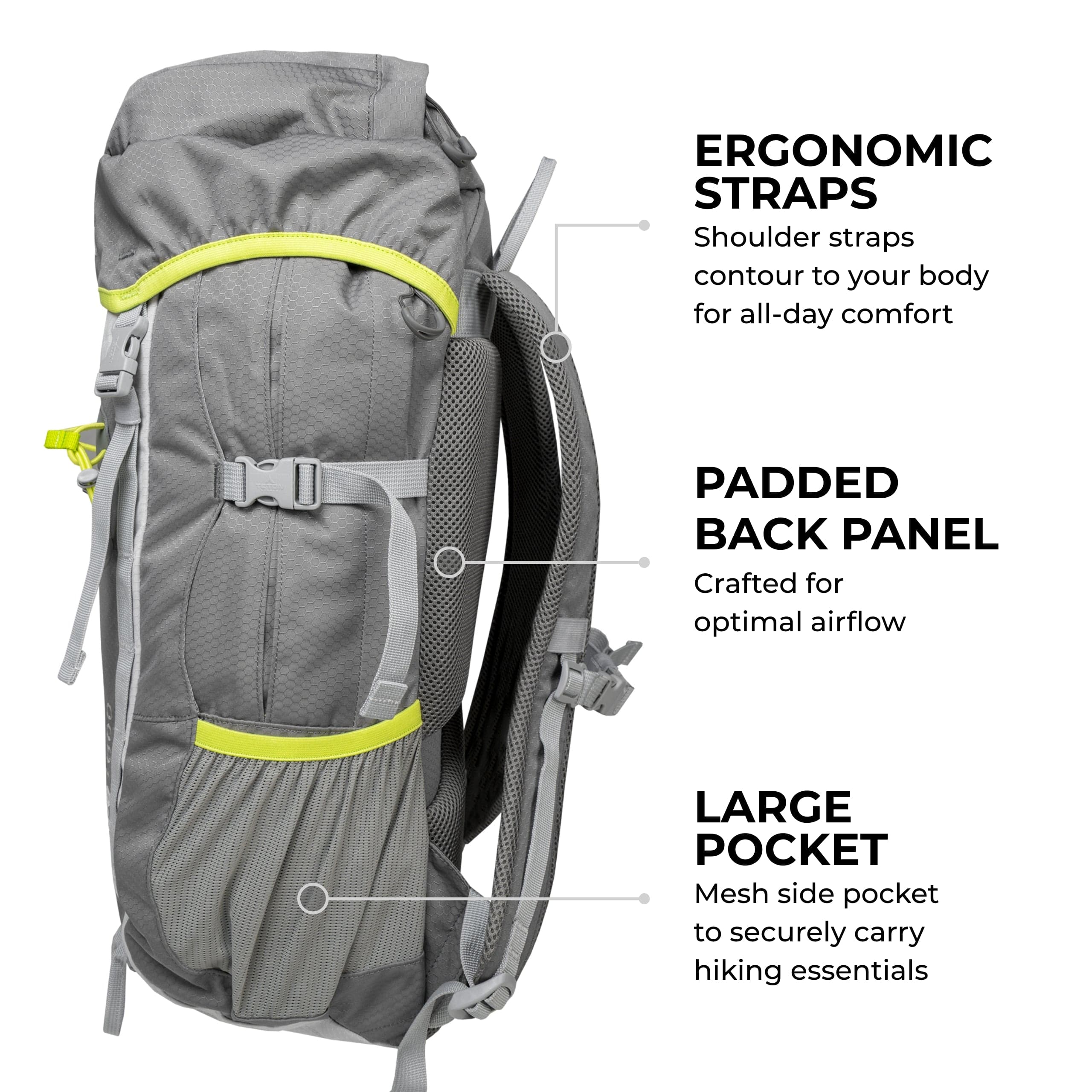 - Stretch mesh side pockets
