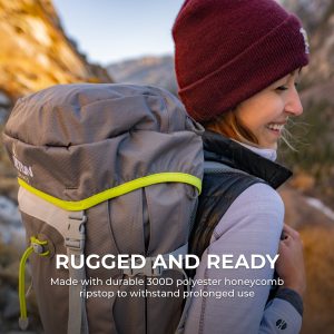- Sewn-in rainfly cover keeps your pack dry