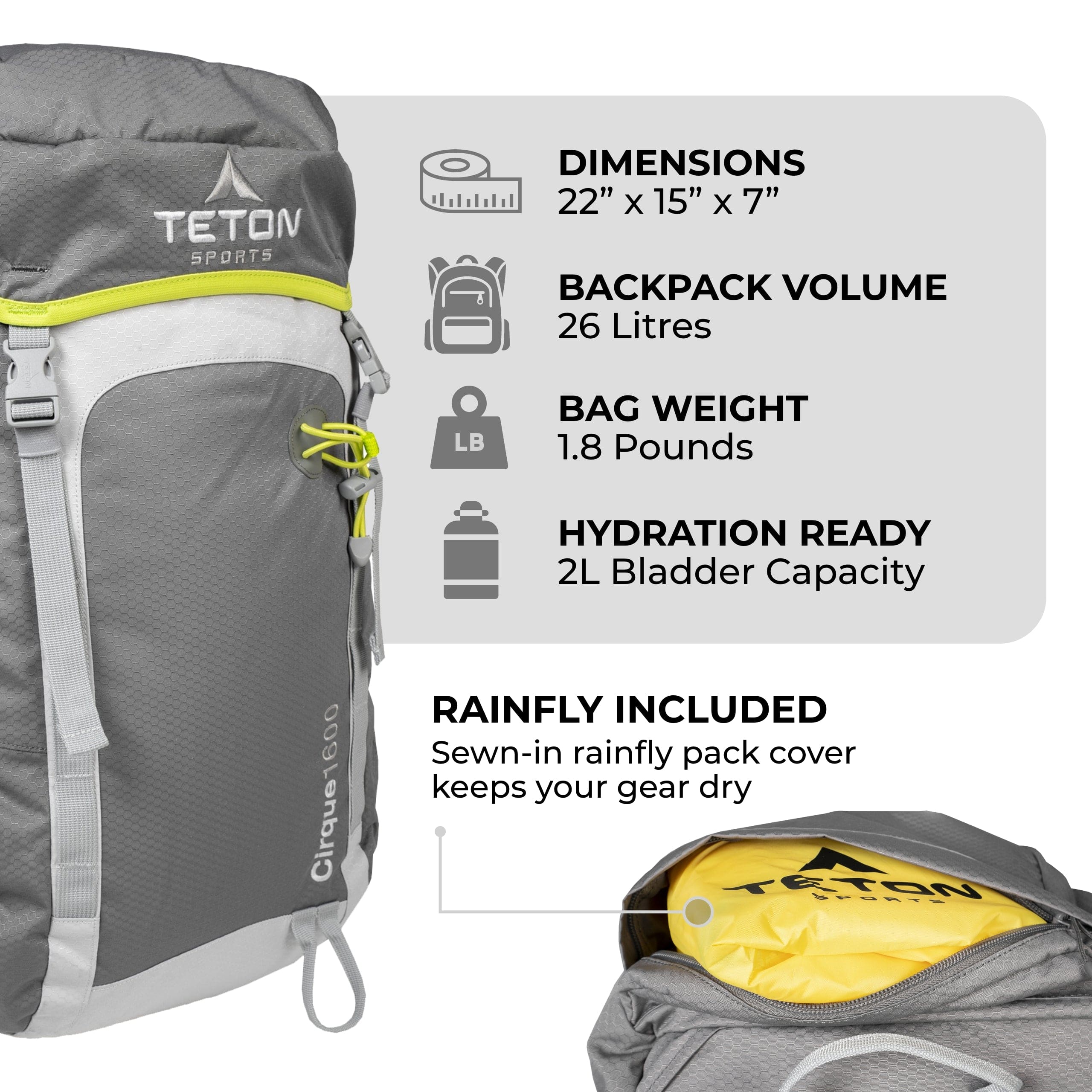 - Sewn-in rainfly cover keeps your pack dry